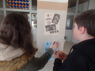 Com os livros candidatos escolhidos, os nossos alunos de 3º ciclo iniciam a campanha eleitoral com o apoio da Biblioteca Escolar, espalhando frases de propaganda em cartazes apelativos.
